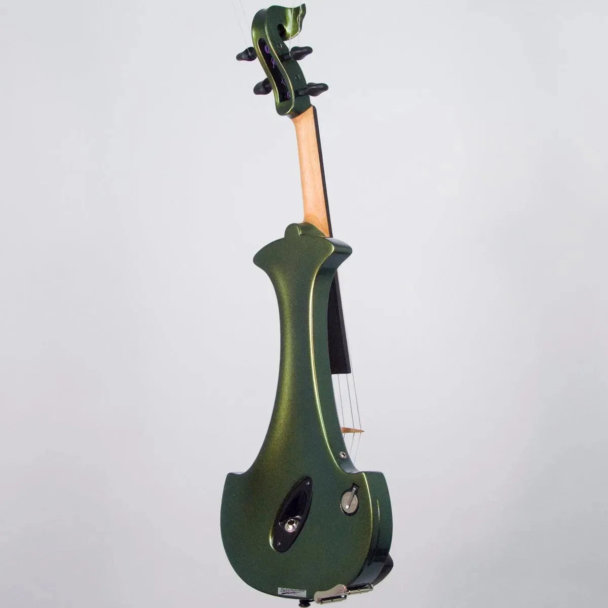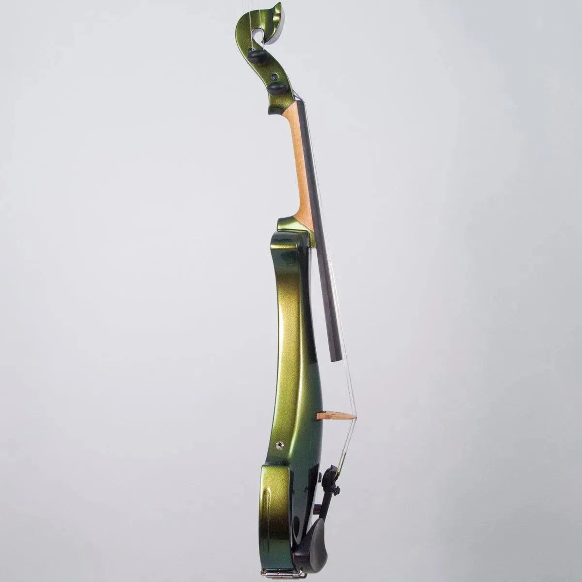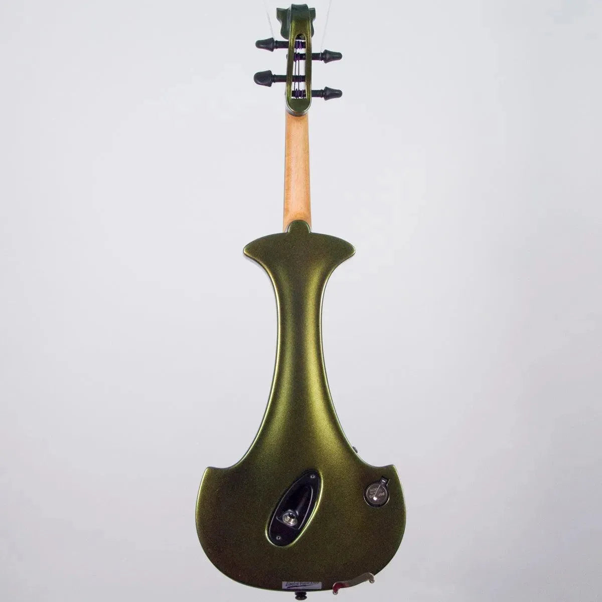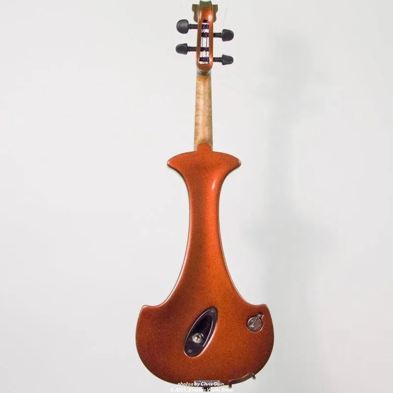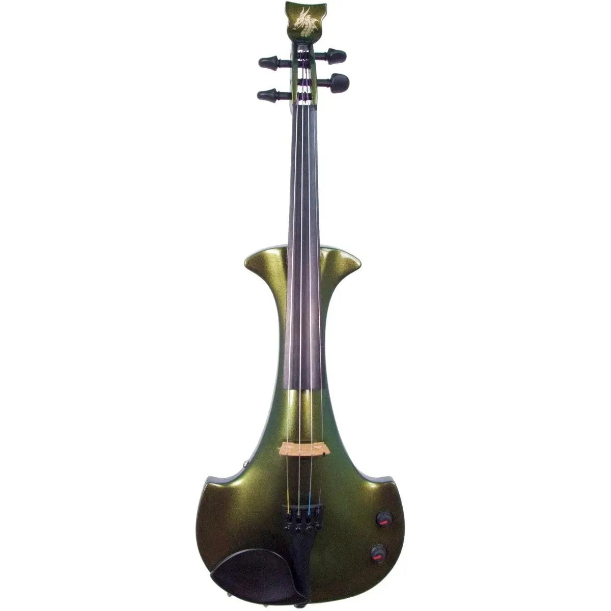 This “hi-spec” custom Illusion Bronze Aquila Dragon from Bridge Violins in the UK sports several upgrades from the standard model, built in the Far East. With upgraded electronics and Wittner Finetune pegs, this is the Aquila for players who are willing to make a bigger investment in an instrument of greater quality. First and foremost, it’s always about tone, and this is where the Aquila Dragon really shines. We already love the sound of the standard Bridge models, yet this Dragon model sounded noticeably better than the standard Bridge 5-string we tested it against. Immediate first impressions were of the instrument’s stronger output, but what really stood out and stayed with us was the beautiful balance of its tone. This Aquila has much more brilliance on the high strings, exhibiting a sparkle and clarity of tone with a notable absence of the harshness that sometimes plagues the violin’s upper register when it’s amplified. Now available in a variety of custom colors, this Dragon Aquila is finished in their beautiful Illusion Bronze paint. Look through all the photos — this finish exhibits color-changing abilities difficult to capture, that only an actual dragon’s scale could hope to match! (There is a fair amount of color variation with Illusion Bronze —- some instruments present primarily red/bronze to green/gold, while others have more of a green to gold shift, with very little red or bronze. The most recent example is shown here, but please view all photos to help you decide if this color is right for you.) Tuning is a breeze with the Wittner Finetune pegs, nearly making the fine tuners built into the Wittner composite tailpiece obsolete. The price of the Illusion Bronze Dragon Aquila includes the same custom hard shell case and carbon composite bow that comes with standard Bridge models.