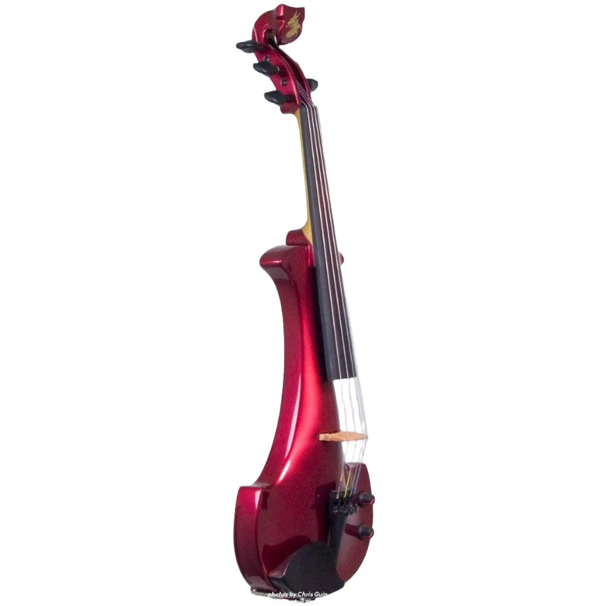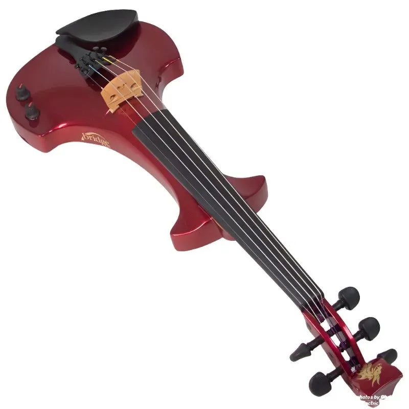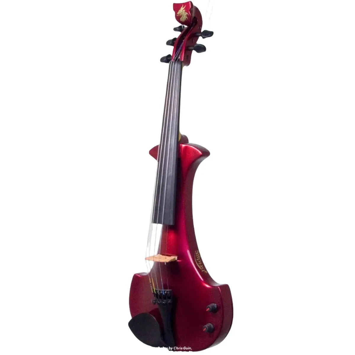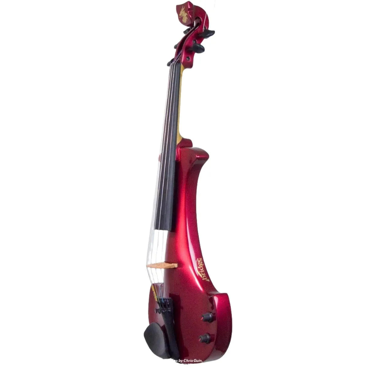 This “hi-spec” custom Cherry Red Pearl Lyra Dragon from Bridge Violins in the UK sports several upgrades from the standard model, built in the Far East. With upgraded electronics and Wittner Finetune pegs, this is the Lyra for players who are willing to make a bigger investment in an instrument of greater quality. First and foremost, it’s always about tone, and this is where the Lyra Dragon really shines. We already love the sound of the standard Bridge models, yet this Lyra sounded noticeably better than the standard Bridge 4-string we tested it against. Immediate first impressions were of the instrument’s stronger output, but what really stood out and stayed with us was the beautiful balance of its tone. This Lyra has much more brilliance on the high strings, exhibiting a sparkle and clarity of tone with a notable absence of the harshness that sometimes plagues the violin’s upper register when it’s amplified. While the Dragons were initially only offered in the trademark Bridge deep purple, this instrument is finished in a beautiful Cherry Red Pearl custom color. Lighter than the Bordeaux Pearl we had a while back, this saturated red metallic really pops under stage lights. It’s a bright, gorgeous red for those that are true lovers of the scarlet hues, made warmer and more striking by the pearlescent mica flakes that reflect by sparks of red. Tuning is a breeze with the Wittner Finetune pegs, nearly making the fine tuners built into the Wittner composite tailpiece obsolete. The price of this Cherry Red Pearl Lyra Dragon includes the same custom hard shell case and carbon composite bow that comes with standard Bridge models.