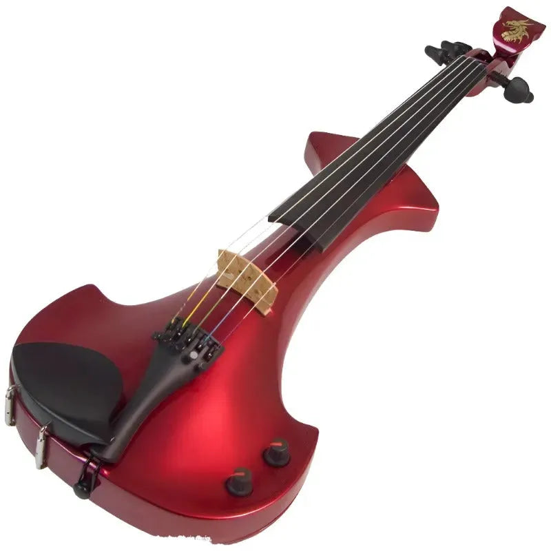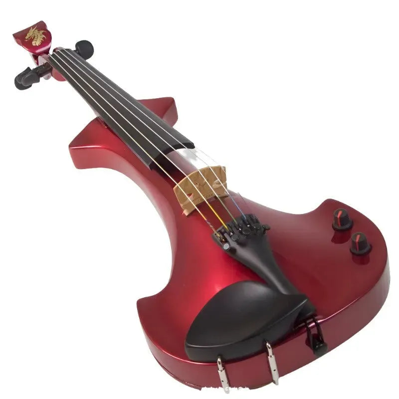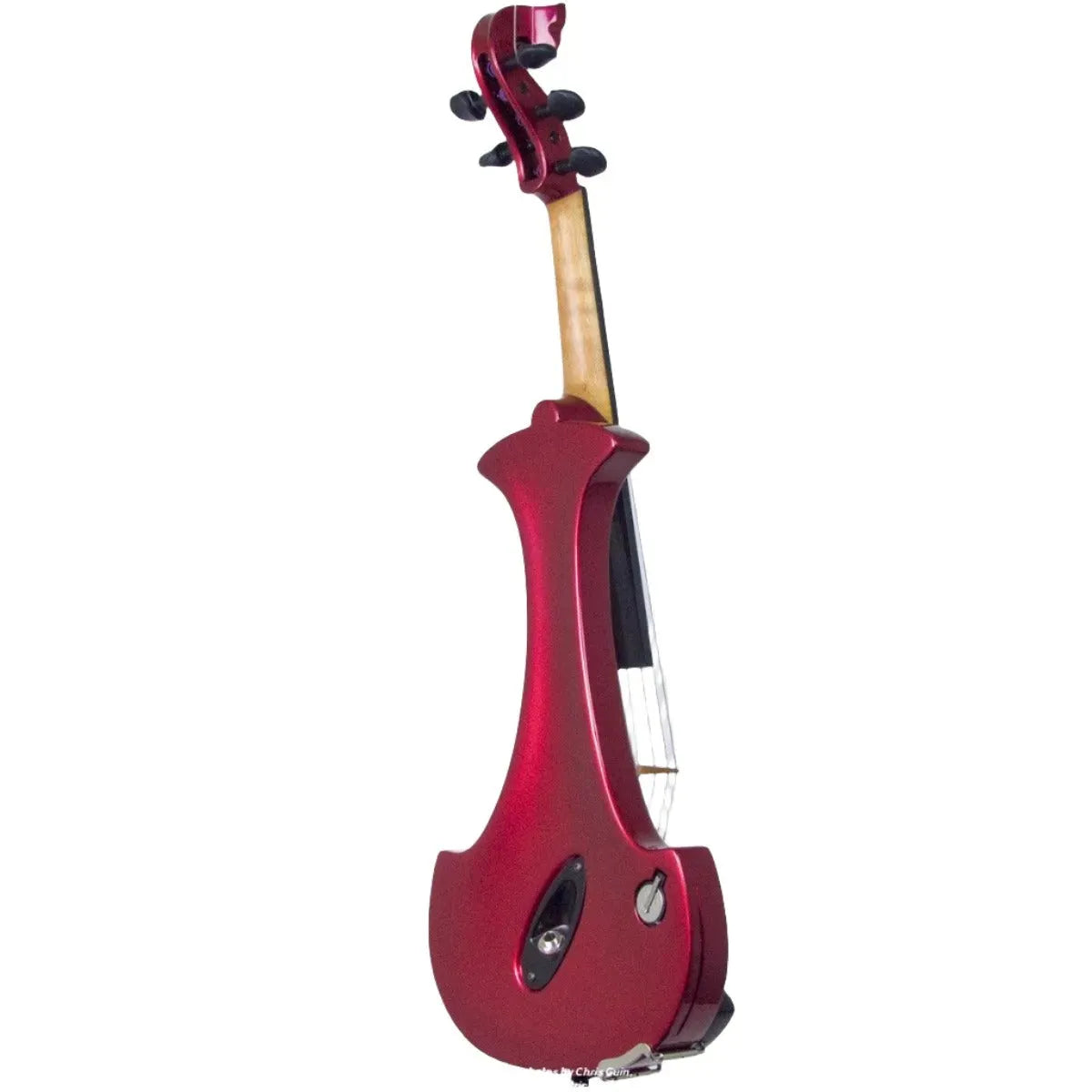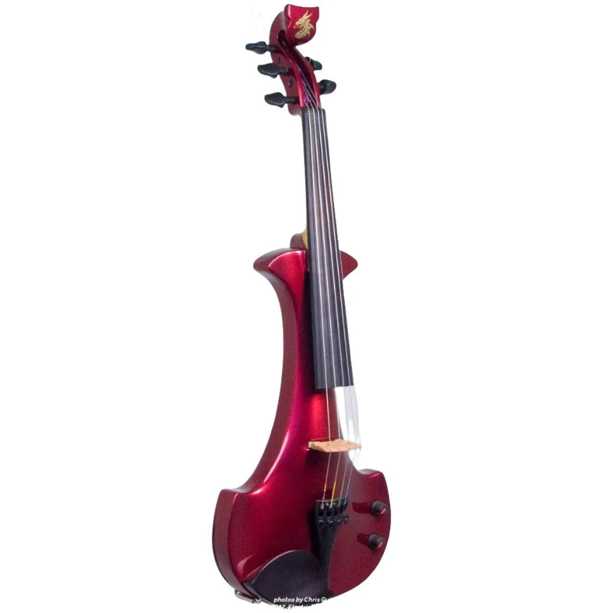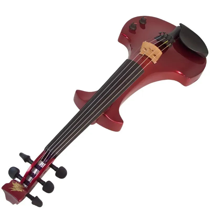 This “hi-spec” custom Cherry Red Pearl Lyra Dragon from Bridge Violins in the UK sports several upgrades from the standard model, built in the Far East. With upgraded electronics and Wittner Finetune pegs, this is the Lyra for players who are willing to make a bigger investment in an instrument of greater quality. First and foremost, it’s always about tone, and this is where the Lyra Dragon really shines. We already love the sound of the standard Bridge models, yet this Lyra sounded noticeably better than the standard Bridge 4-string we tested it against. Immediate first impressions were of the instrument’s stronger output, but what really stood out and stayed with us was the beautiful balance of its tone. This Lyra has much more brilliance on the high strings, exhibiting a sparkle and clarity of tone with a notable absence of the harshness that sometimes plagues the violin’s upper register when it’s amplified. While the Dragons were initially only offered in the trademark Bridge deep purple, this instrument is finished in a beautiful Cherry Red Pearl custom color. Lighter than the Bordeaux Pearl we had a while back, this saturated red metallic really pops under stage lights. It’s a bright, gorgeous red for those that are true lovers of the scarlet hues, made warmer and more striking by the pearlescent mica flakes that reflect by sparks of red. Tuning is a breeze with the Wittner Finetune pegs, nearly making the fine tuners built into the Wittner composite tailpiece obsolete. The price of this Cherry Red Pearl Lyra Dragon includes the same custom hard shell case and carbon composite bow that comes with standard Bridge models.