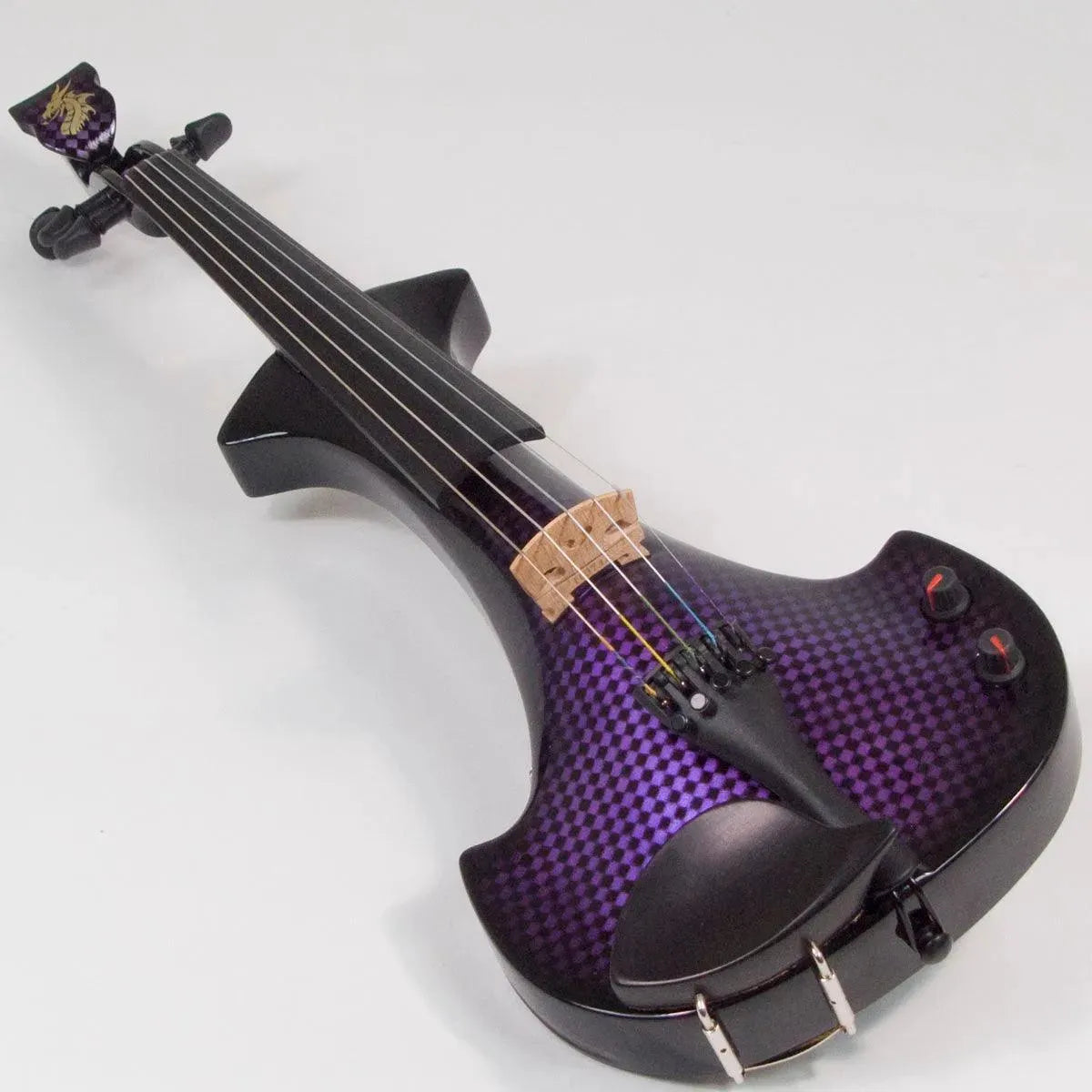 This “hi-spec” custom ‘Purple Matrix’ Lyra Dragon from Bridge Violins in the UK sports several upgrades from the standard model, built in the Far East. With upgraded electronics and Wittner Finetune pegs, this is the Lyra for players who are willing to make a bigger investment in an instrument of greater quality.