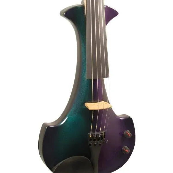 The Bridge Lyra 5-string violin features a hollow body made of a carbon fiber and Kevlar composite. The enclosed air resonates to provide a rich amplified violin sound while maintaining the strength and durability of a solid body instrument. This Lyra is finished in their original color-shifting purple/green Illusion finish.