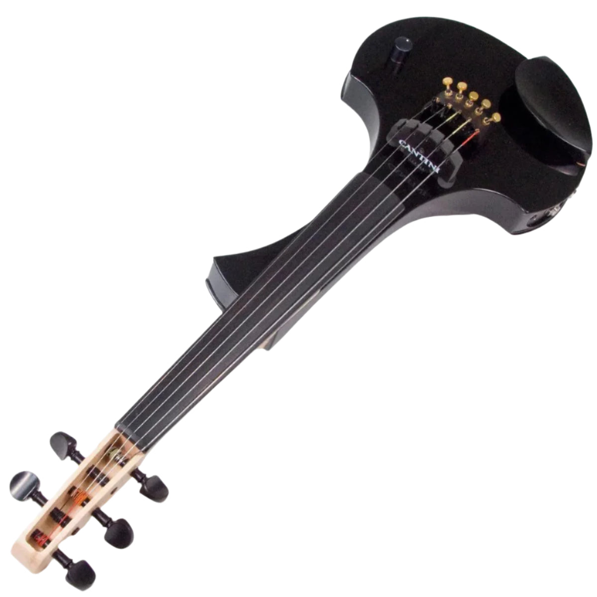 The Cantini Earphonic electric violin has an attractive, modern look, with a narrow-shouldered double cutaway design and a lower bout shape that will hold most standard shoulder rests. The Earphonic is a fabulous dual-purpose electric violin, with both analog and MIDI outputs.