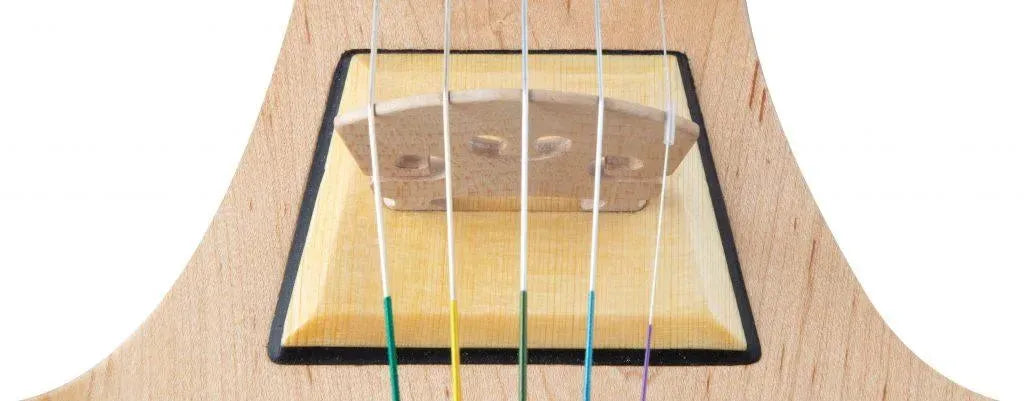 Unlike with many other electric violins, the Elvari pickup system is not built into the bridge. Instead, the maple bridge sits atop a tone plate made from fine alpine spruce wood. The string vibrations travel through the bridge and interact with the tone plate, which acts as the top plate of an acoustic violin. Its carefully tuned and insulated with silicone. Their unique microphone system picks up the vibrations in the tone plate and sends them on to the amplifier. The enclosed contact mic picks up only physical vibrations and not airborne sounds, as a traditional microphone or even an acoustic violin with a pickup might.