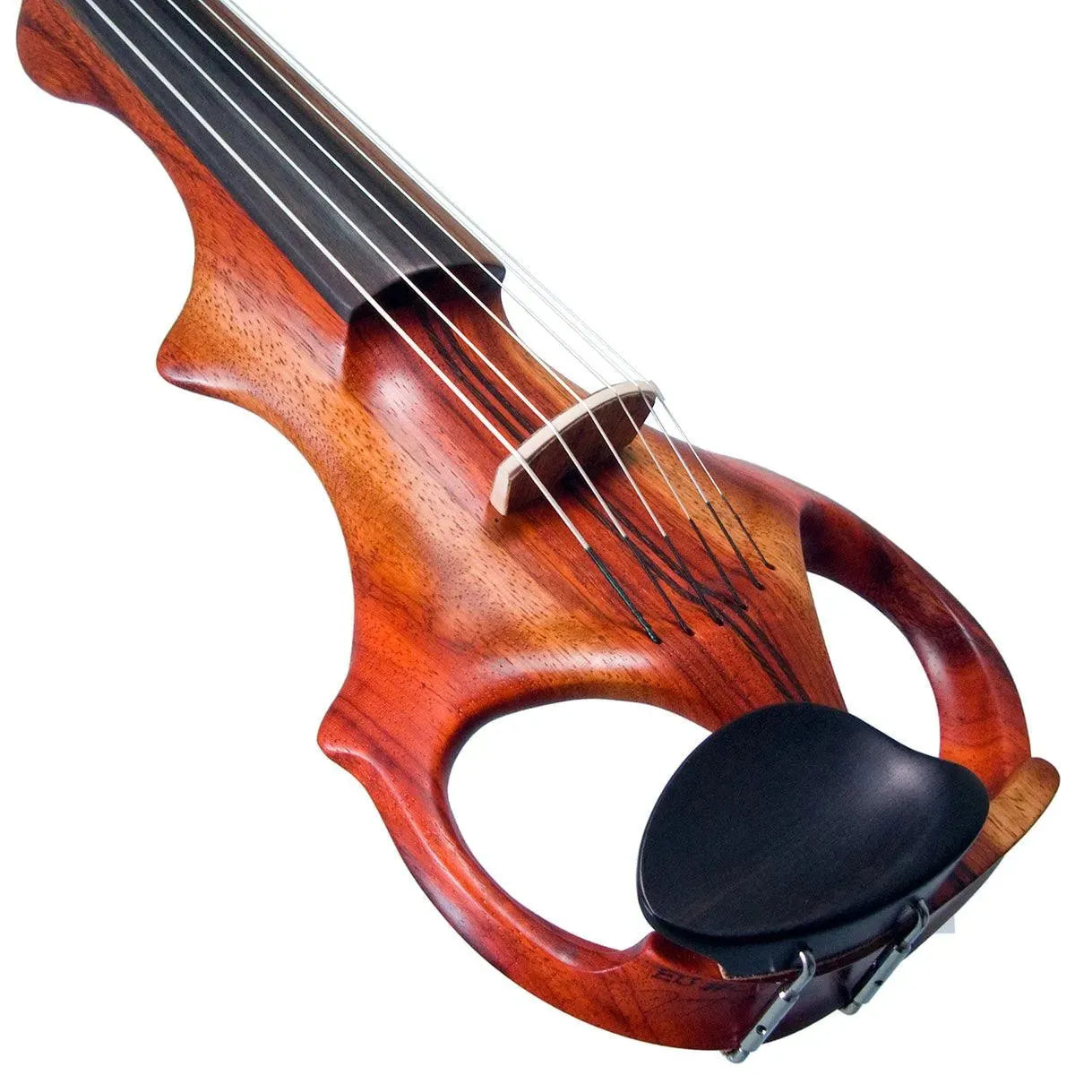 ETJ electric violins are designed and handmade by Eric Jacquin in Monteux, France. The unique, lightweight wooden design is attractive, extremely lightweight, and easy to play. The neck-through body construction is carved from a dramatic piece of two-tone Padauk wood. The resonant body design combined with a Starfish pickup results in a dark, rich and lush tone.