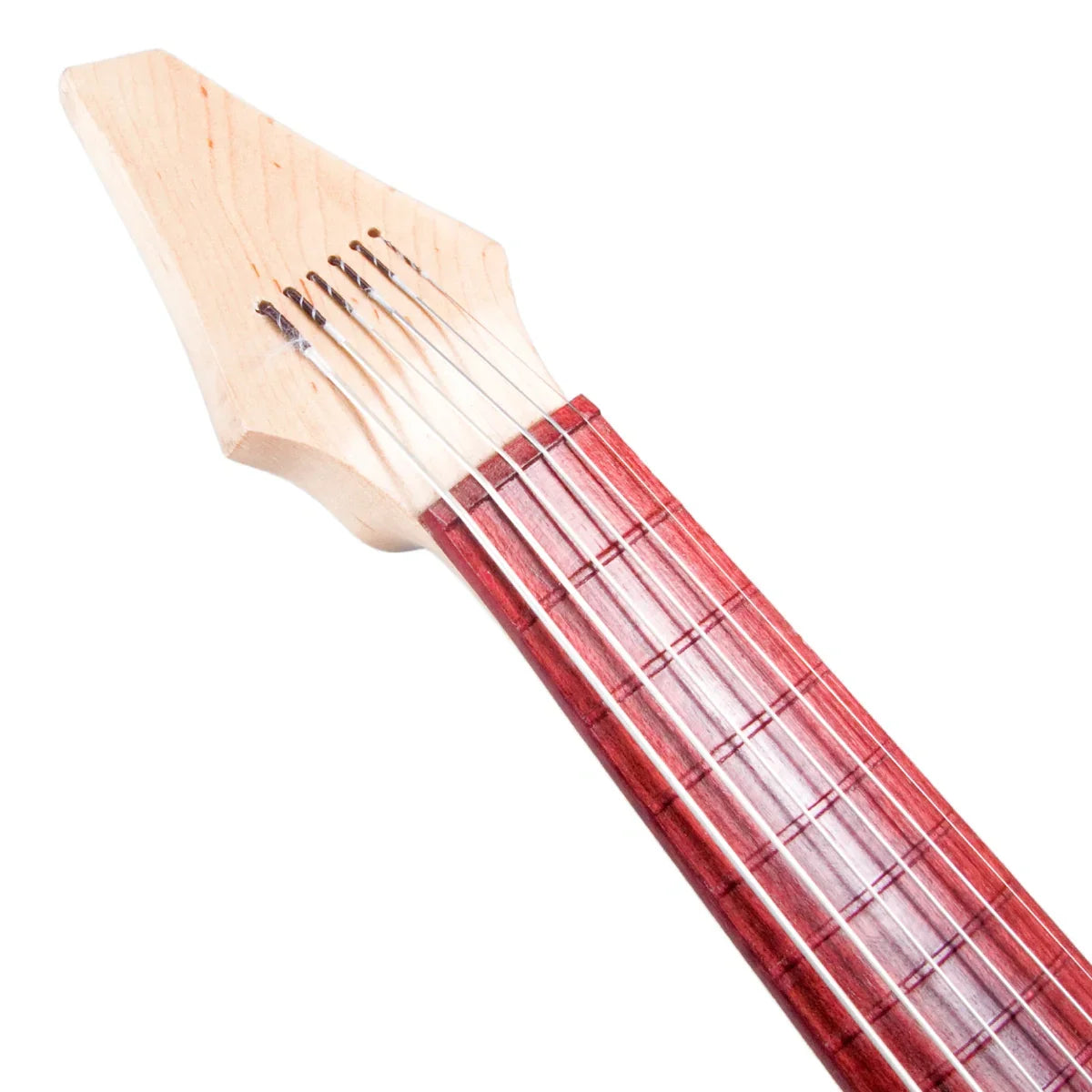 This model features wooden frets that are machined in relief from a purpleheart wood fingerboard. The wooden frets look subtle and aid an organic feel and a woody tone!