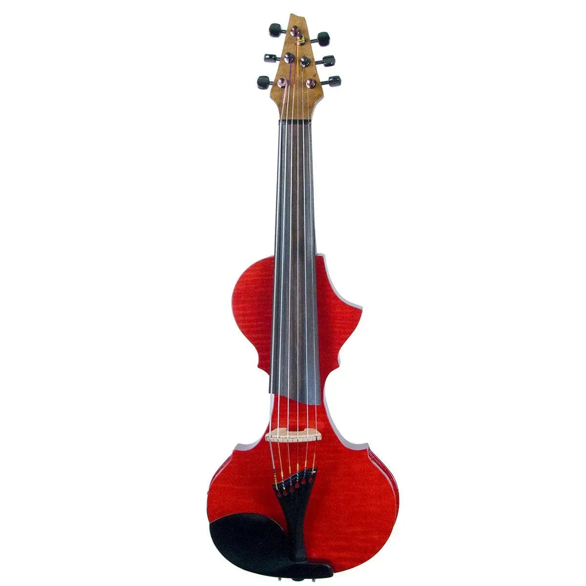 From Electric Violin Lutherie come the Quartet model electric violin, a nod to classic design with practical modifications for the modern player. Cut from a strikingly flamed piece of maple and stained in a bold red finish, this model is equipped with a Barbera Transducer bridge.