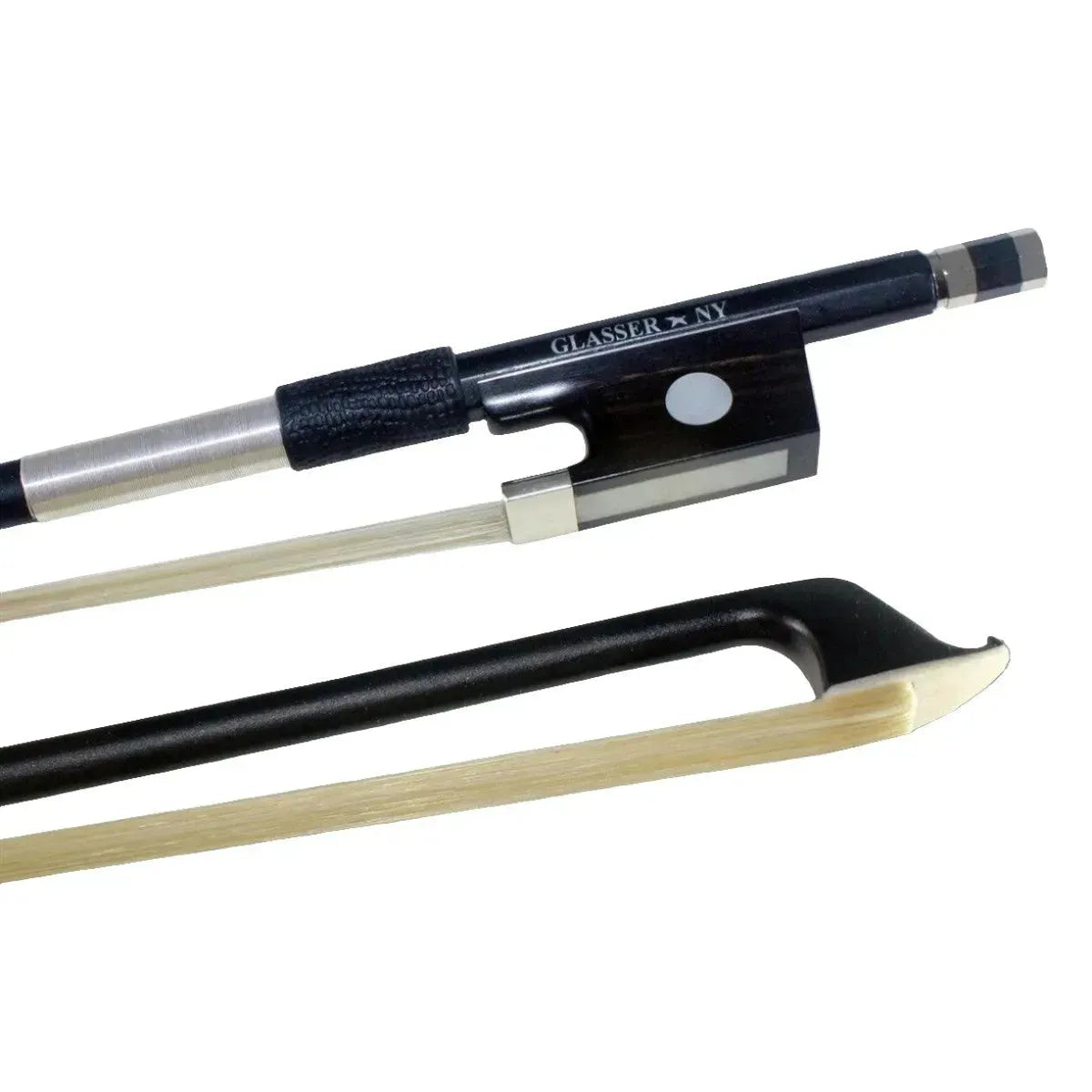 Mounted with a half-lined Paulus ebony frog with faux pearl slide and eye. All X-Series Carbon Graphite Bows are satin black, nickel silver wound, with an imitation lizard grip.