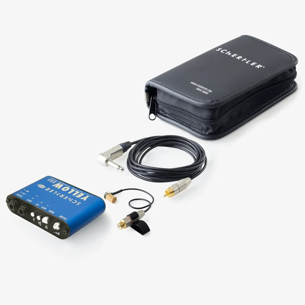 STAT UNO combines the STAT pickup with the battery-powered YELLOW UNO preamplifier. The package includes a connection cable and padded bag.