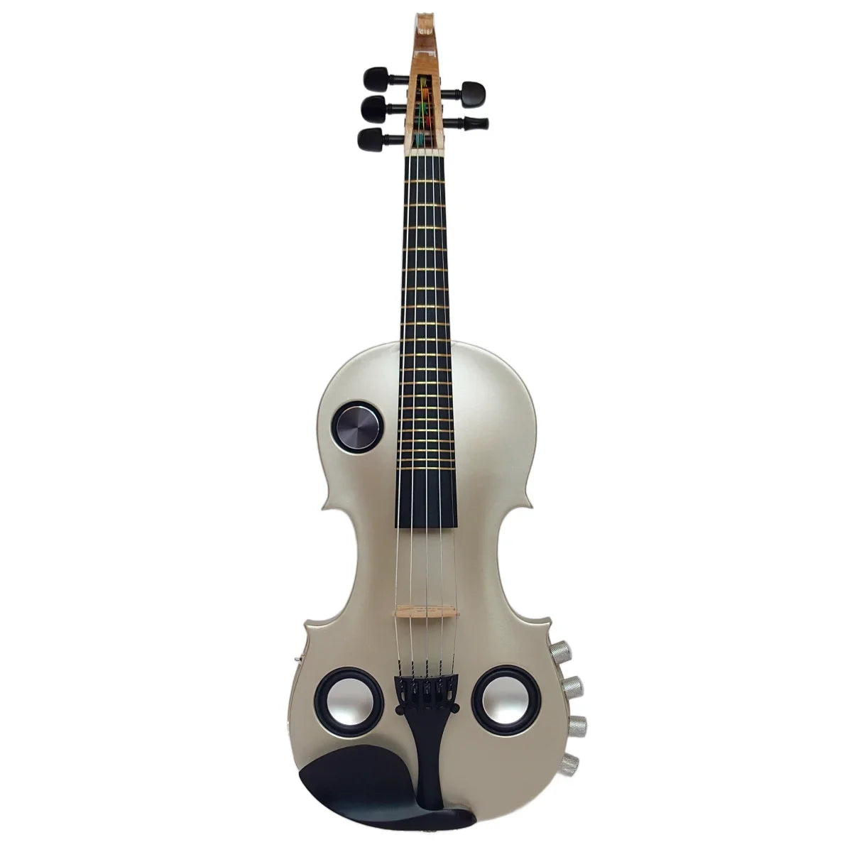 The chambered body design serves several purposes–it retains a traditional full violin shape while keeping weight to a minimum; it allows for acoustic resonance within the instrument, adding to the richness and complexity of the tone; it creates a closed resonating environment, which eliminates feedback, making this a great performance violin whether using the onboard speaker system or plugging into a loud PA and stage monitoring system.