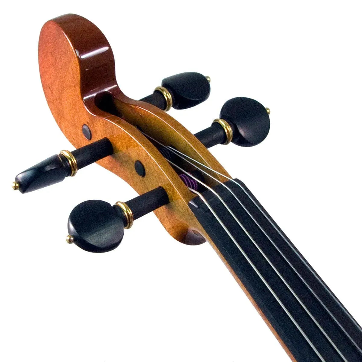 This lovely viola features the somewhat unique combination of ZETA’s Jazz-series pickup, engineered for extremely smooth tone and zero string cross talk, with their semi-hollow Modern-style body, designed for lightweight and physical familiarity. Adding to the uniqueness is the gorgeous book-matched top from tiger stripe flamed maple, contrasted dramatically by dark bolts of spalting.