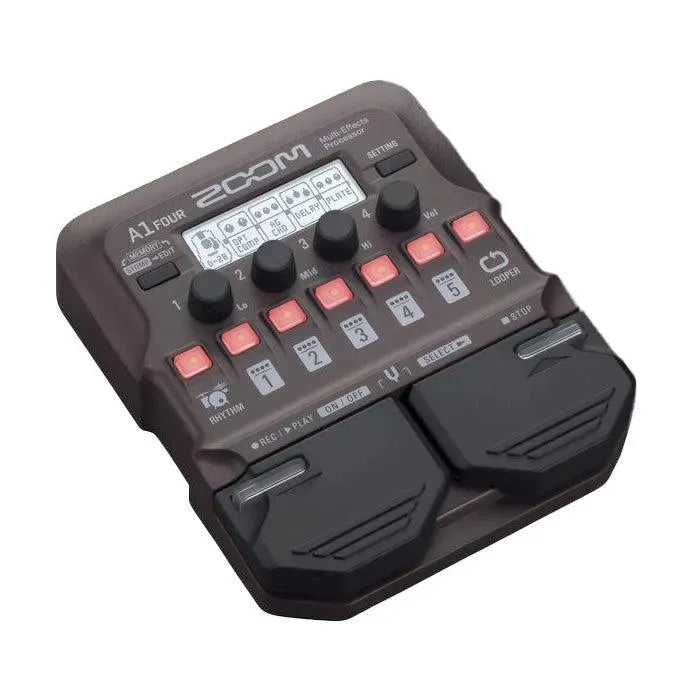 With specially engineered effects, built-in looper and drum machine, the Zoom A1 FOUR is the first Multi-Effects Processor designed for a variety of acoustic string and wind instruments, including bowed strings!